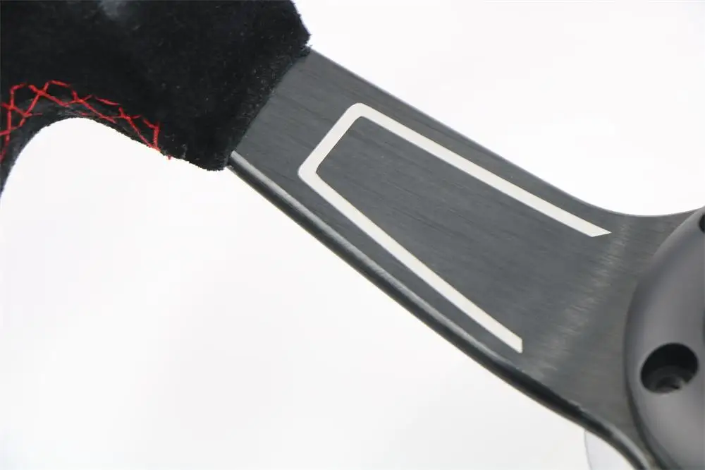 O Volante 14” Suede foi projetado para reproduzir a experiência autêntica das pistas.