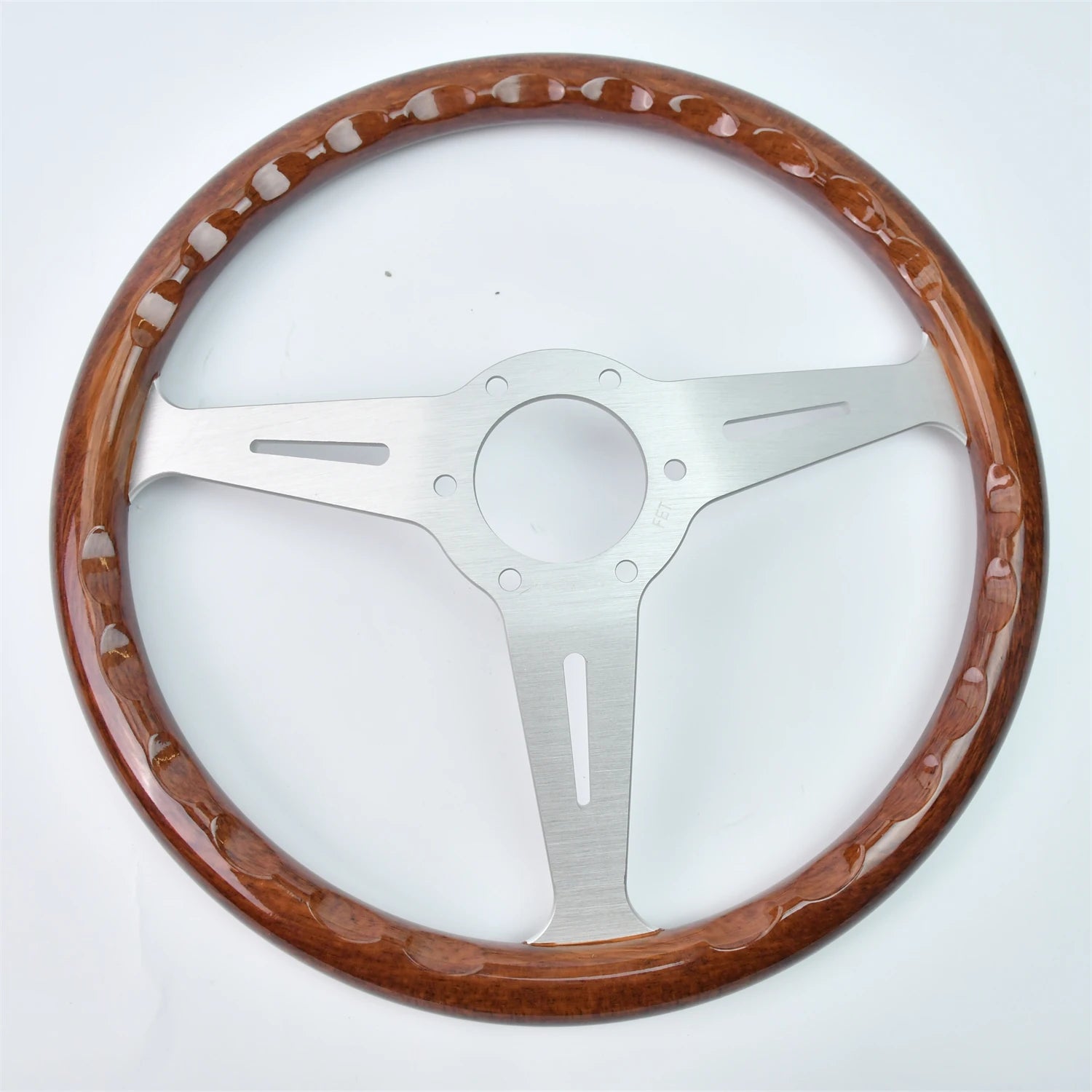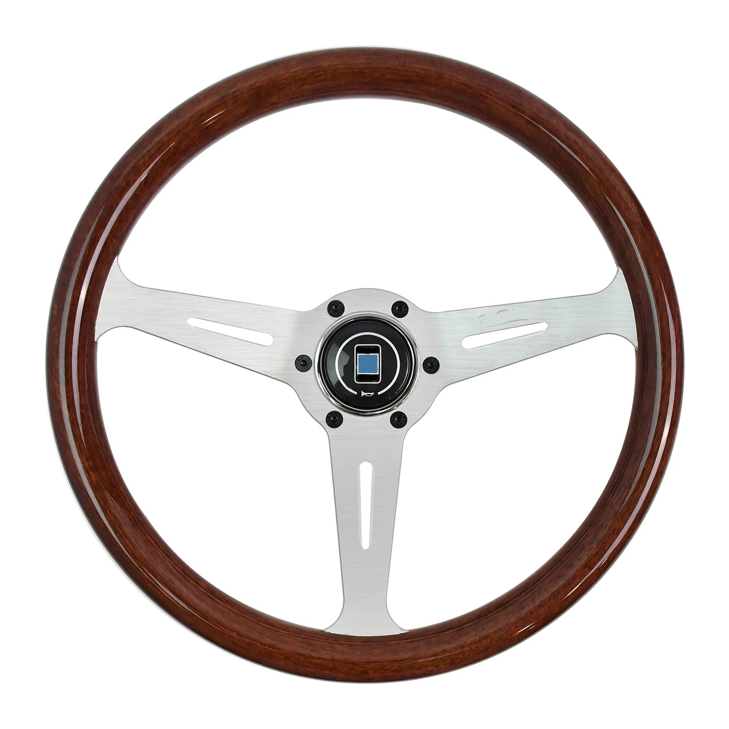 Volante Esportivo Clássico em Madeira e Alumínio 350mm
