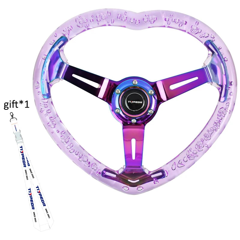 Volante Coração Acrílico TIYPEOR 350mm – Design Transparente Iridescente, Estilo JDM e Performance Única 💜