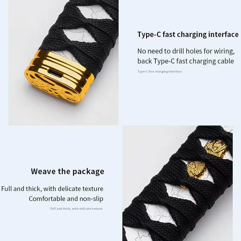 O grande diferencial desta manopla está no seu design inspirado na empunhadura de uma katana japonesa, com acabamento que remete diretamente à cultura samurai.